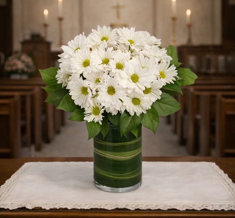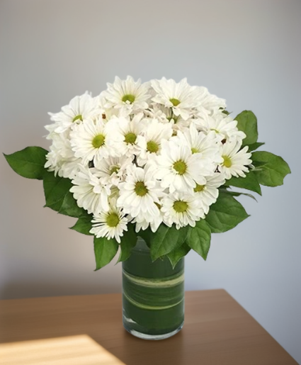A timeless symbol of innocence, happiness, and cheer, the daisy brings a lighthearted charm to any setting. Brimming with cheerful daisy poms and fresh greenery, this bright arrangement is sure to lift spirits and spread smiles. Send Dazzling Daisy Poms today for a thoughtful gift that won’t be forgotten.